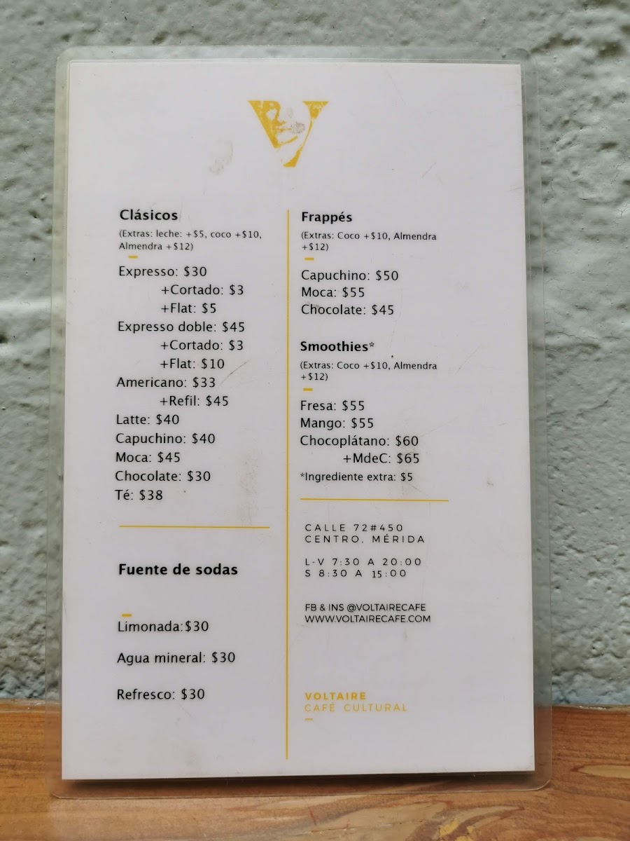 Welcome to Voltaire Café Cultural, a charming gem nestled in the heart of Merida. This quaint café not only serves exceptional coffee but also offers a diverse menu that caters to various tastes.